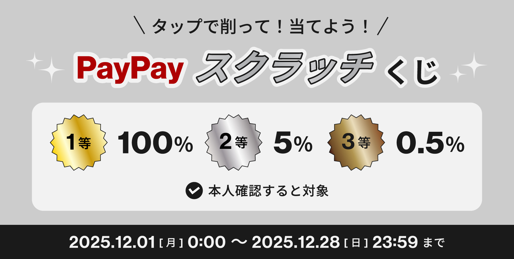 いつもクニルプス日本公式オンラインストアをご利用いただき誠にありがとうございます。 この度、PayPayのキャンペーン「PayPayスクラッチくじ」が実施されることとなりました。 期間中、当店でPayPayを利用してお買い物をしていただくと、対象のお支払いごとにスクラッチくじを引くことができます。 最大で決済金額の100%…