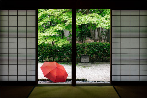 高崎市美術館併設の旧井上房一郎邸は1952年実業家井上房一郎の自邸として建てられました。チェコ生まれの近代建築家、アントニン・レーモンドの建築スタイルを取り入れたもので、井上とレーモンドとの友情の証でもあります。現存するモダニズム建築とKnirps × NUNOとの共演が実現しました。